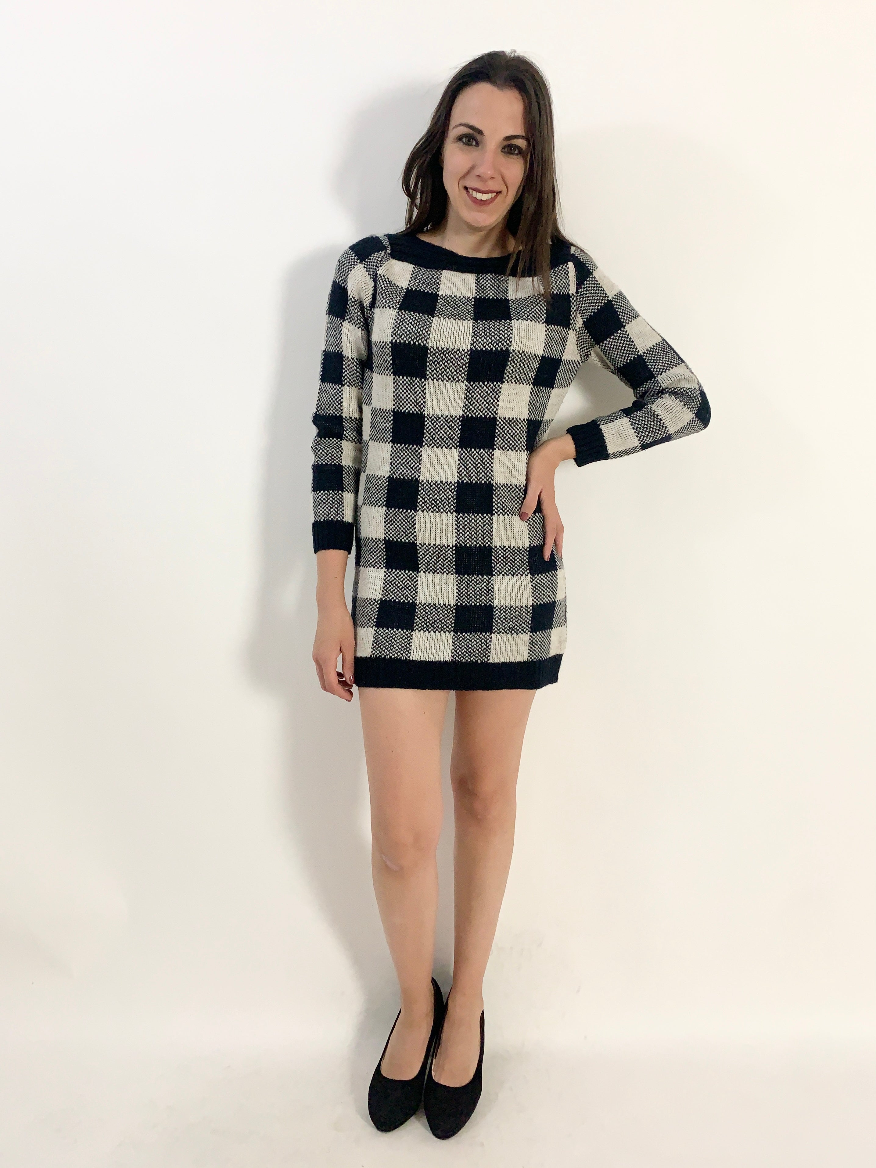 Grazioso abitino morbido blu e bianco quadrettato misto lan e mohair tessuto elastico tg M/L misure: