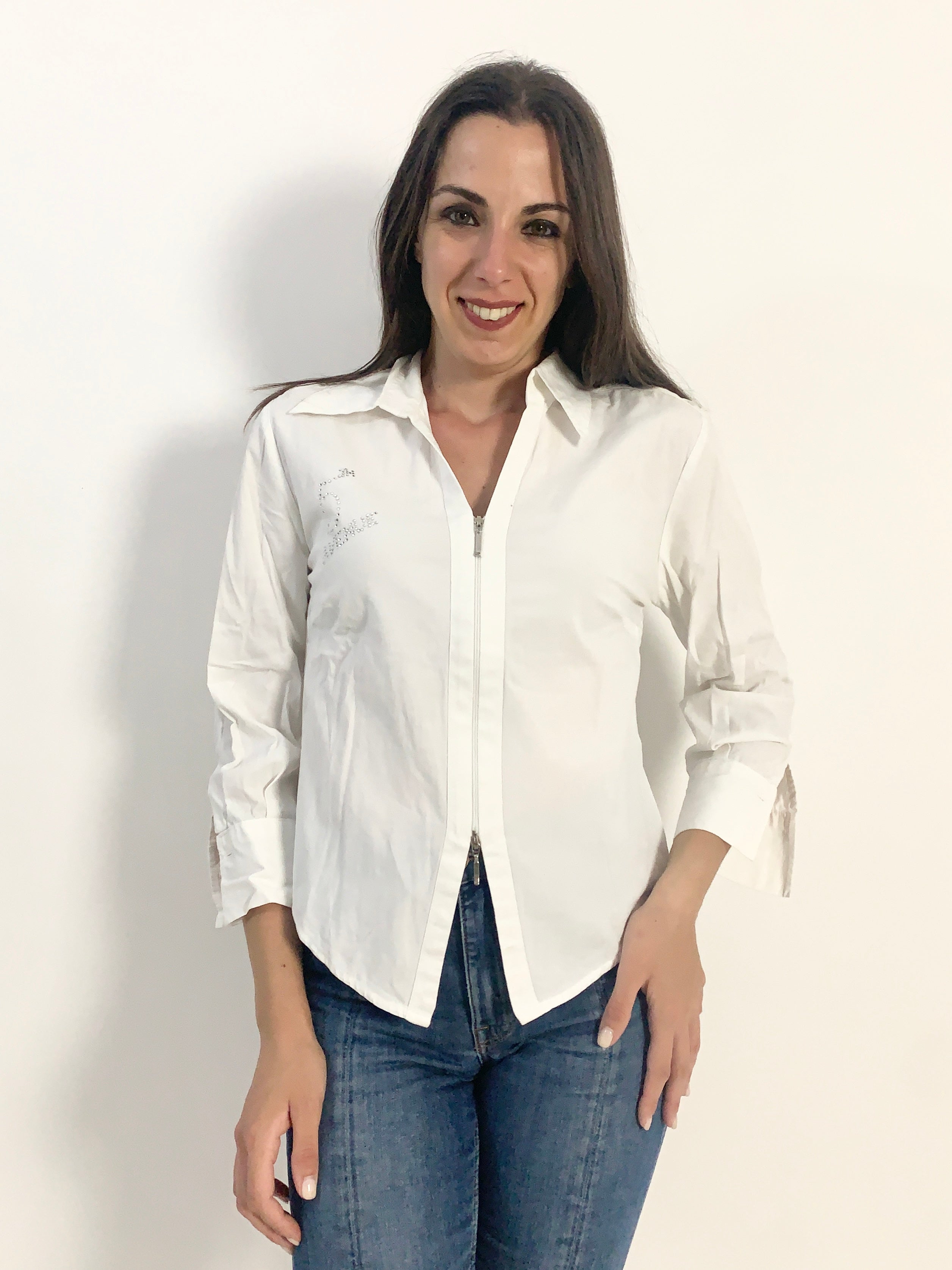 Graziosa camicetta linea lavorazione artigianale puro cotone molto bella e delicata con tri tri tri annesso e zip centrale regolabile tg S/M misure: