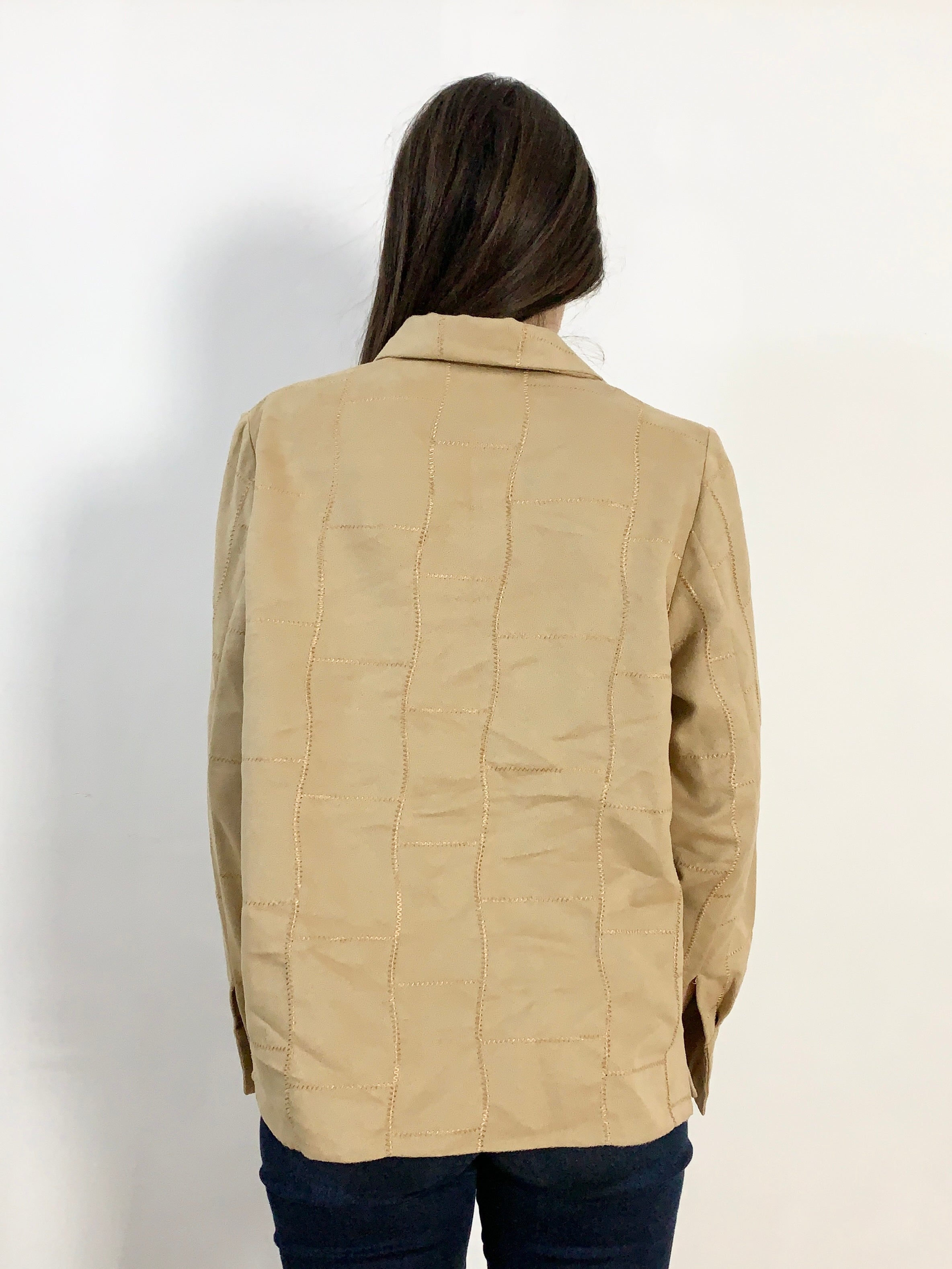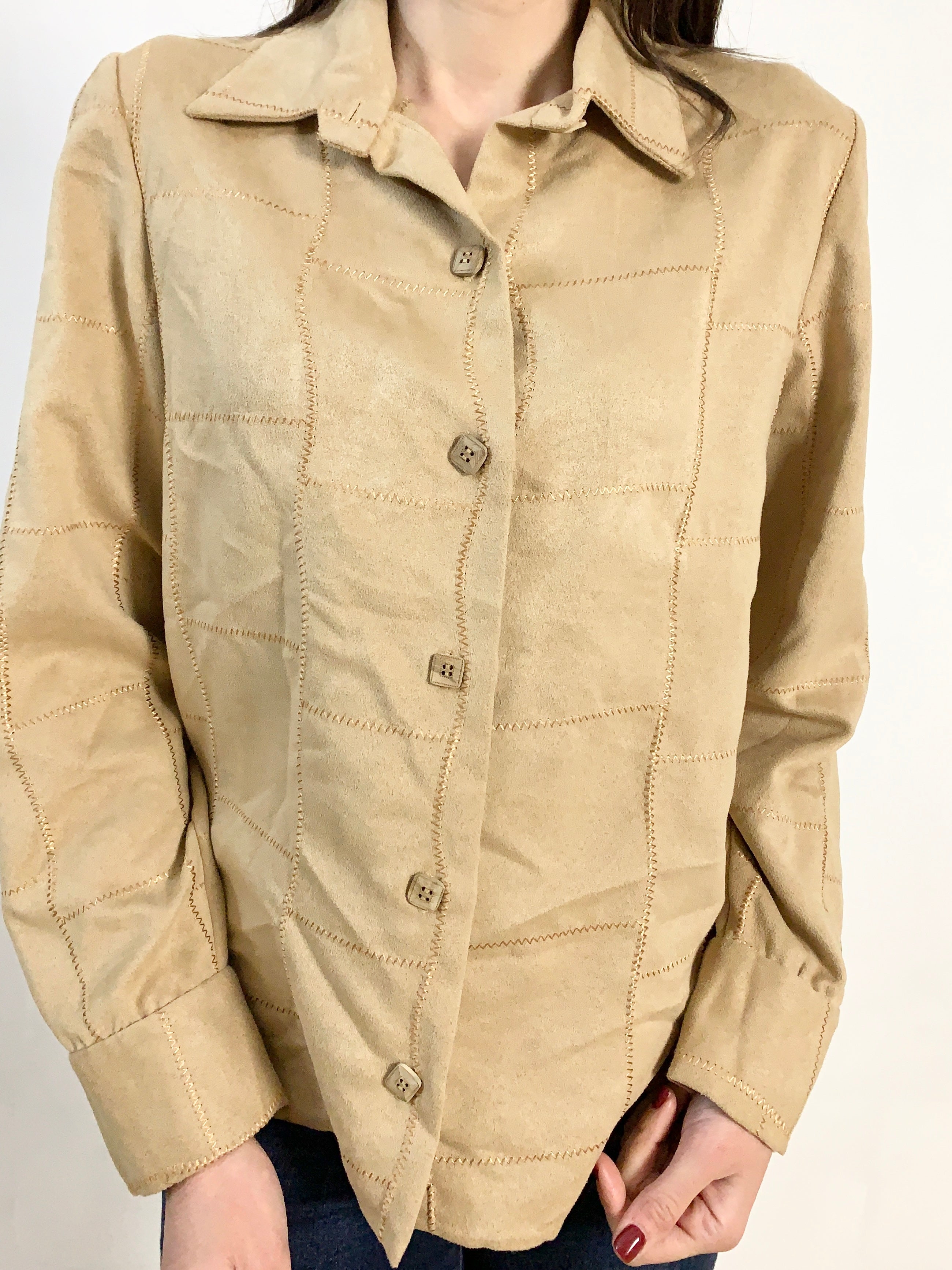 Graziosa camicetta effetto scamosciatino tg 46/48 color cammello con cuciture a vista molto bella e delicata misure: