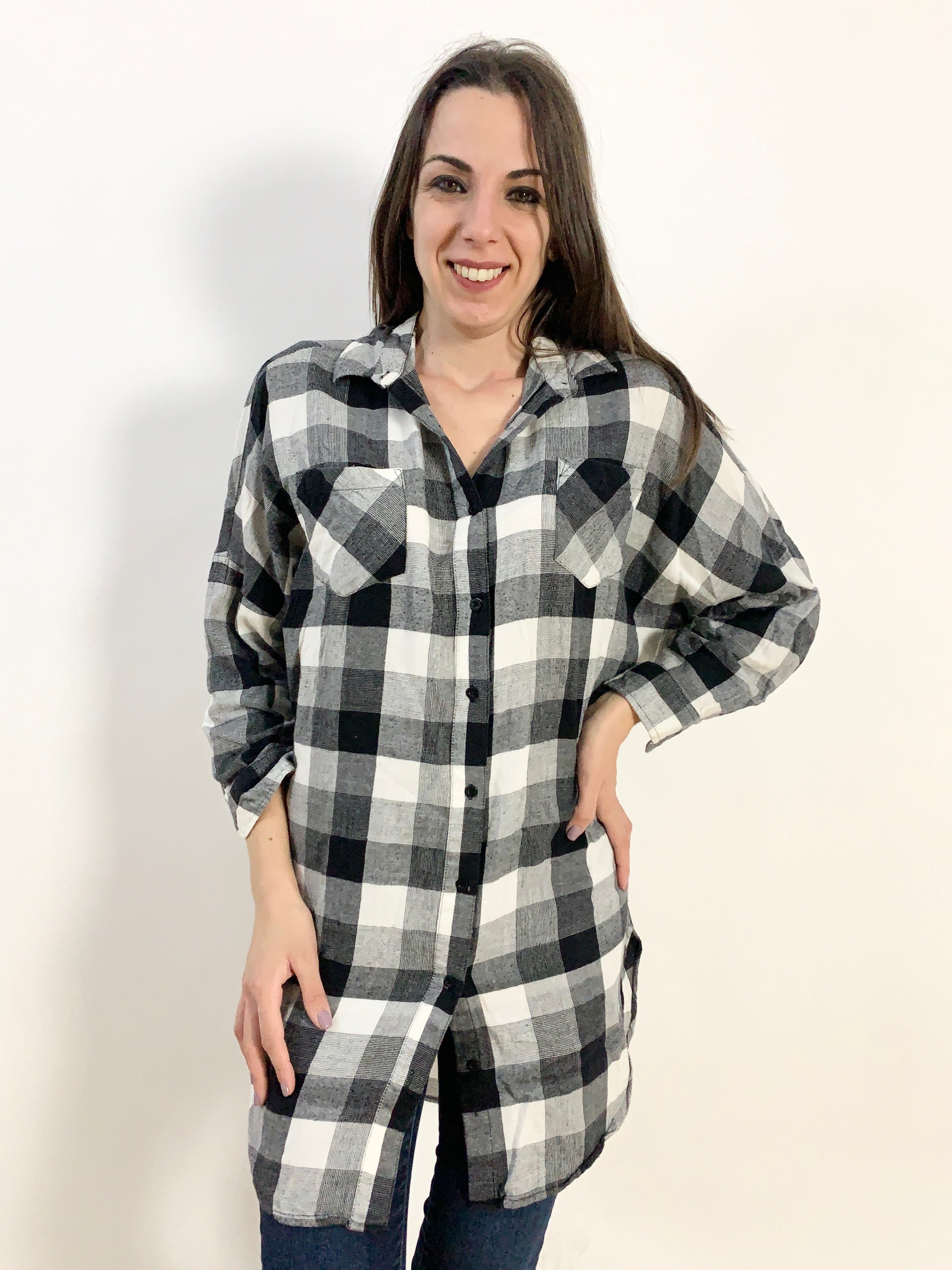 Rifinita camiciona a quadri sui toni del nero grigio e bianco tg 48/50 puro cotone misure: