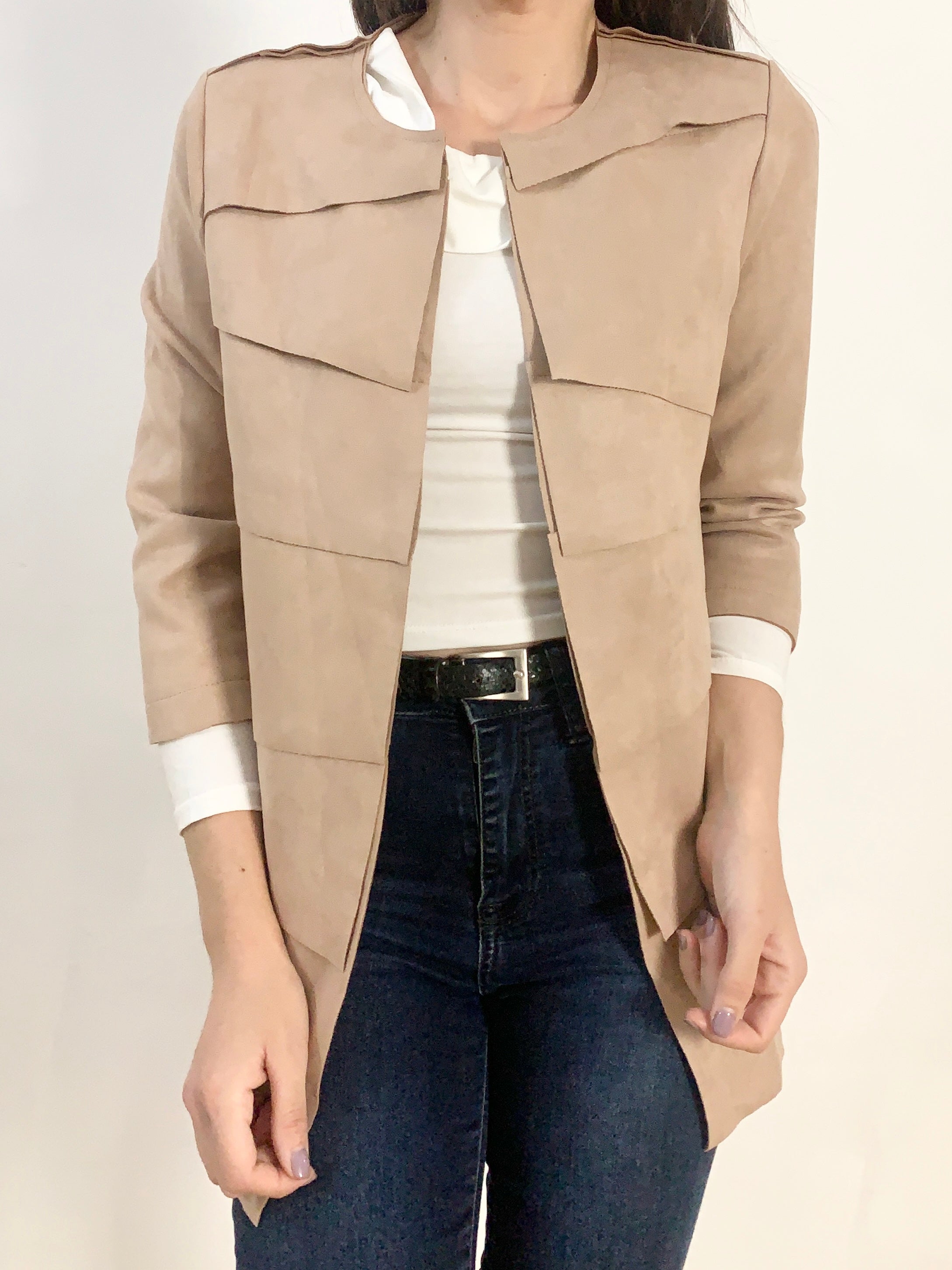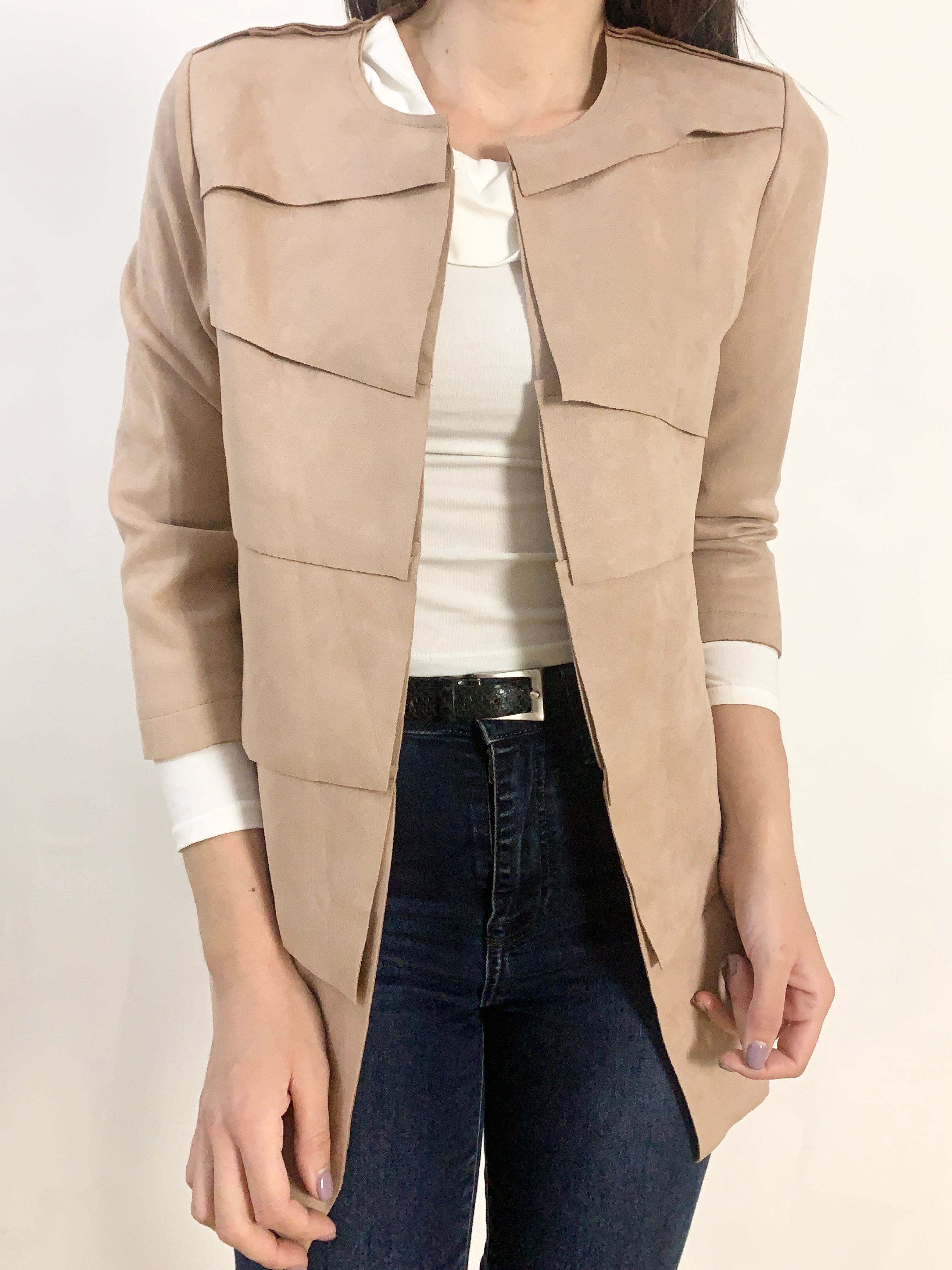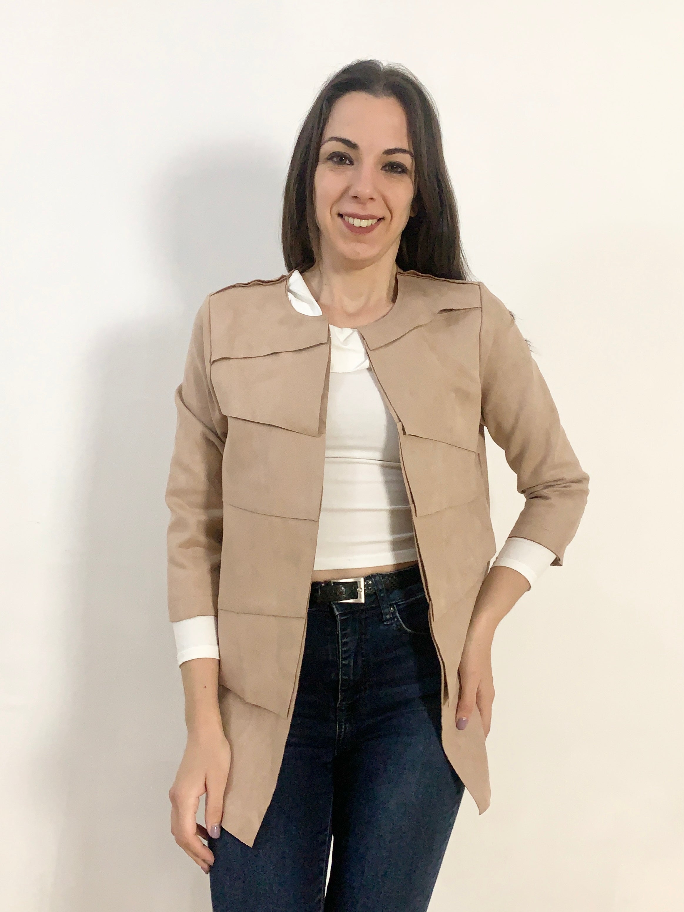 Grazioso giacchino molto bello e delicato effetto scamosciatino gran bel tono di colore a spicchi chic e rifinito tg M/L misure: