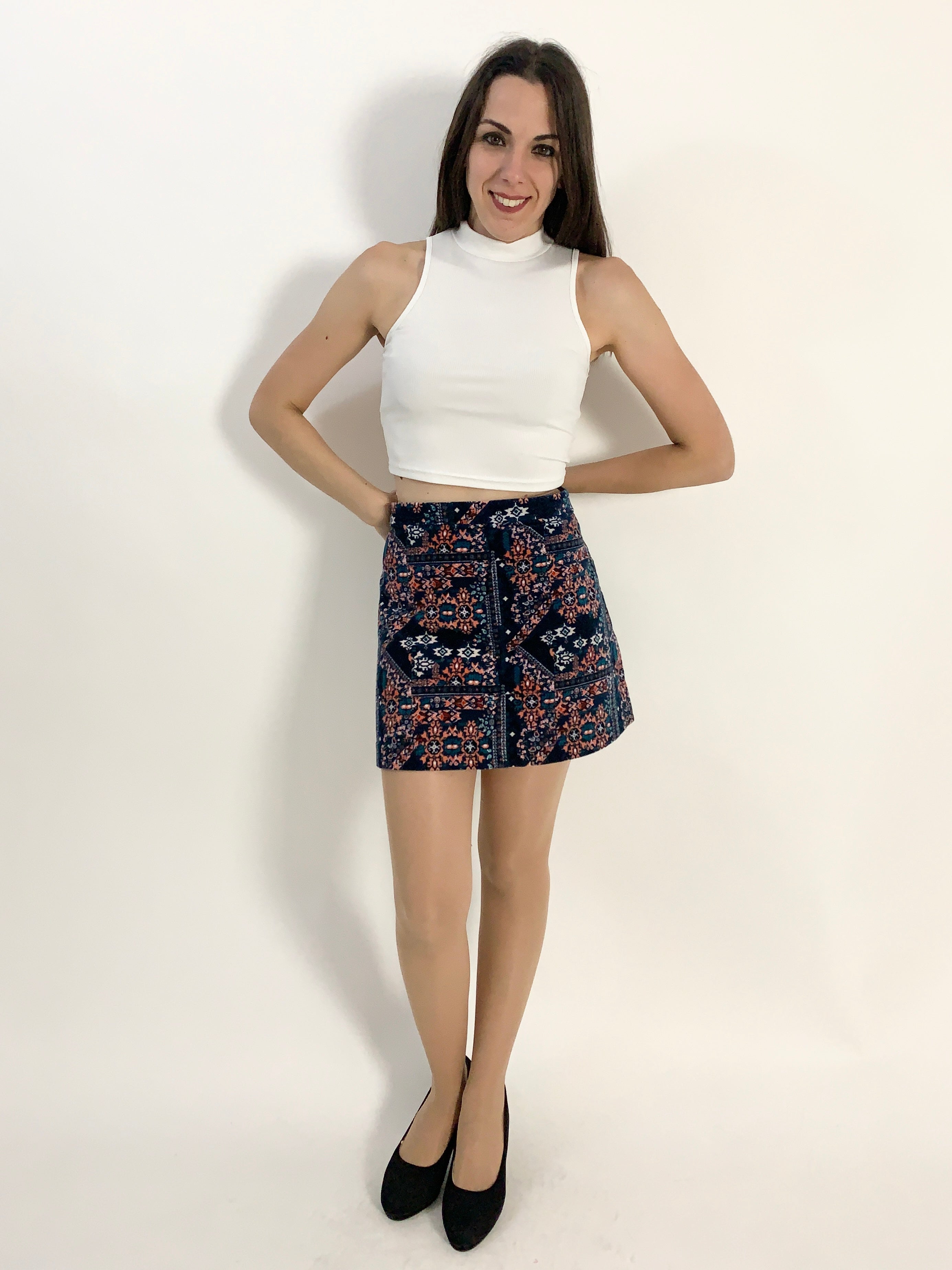 Graziosa gonna in fantasia in velluto liscio dalla delicata fantasia tg M/L misure: