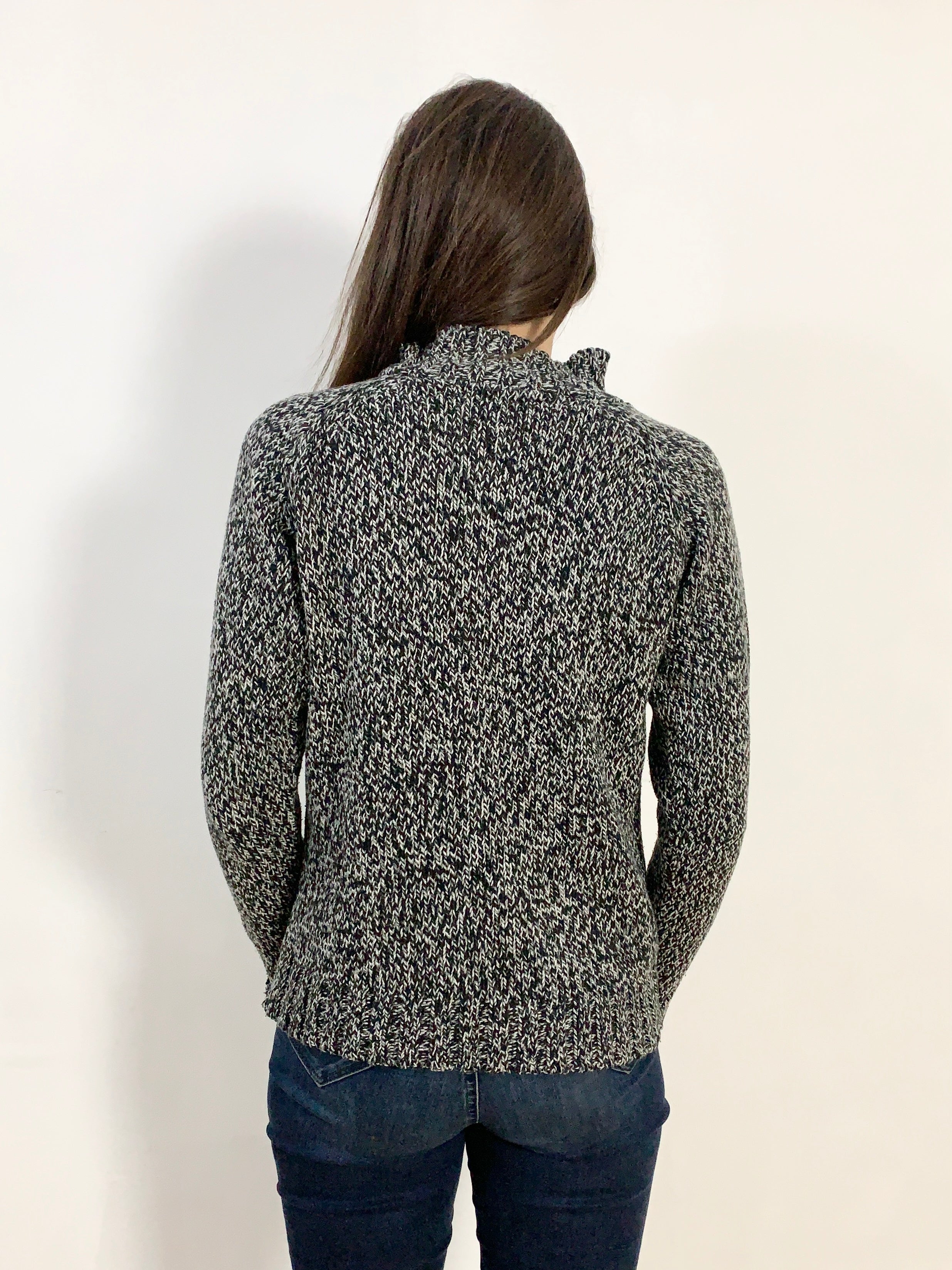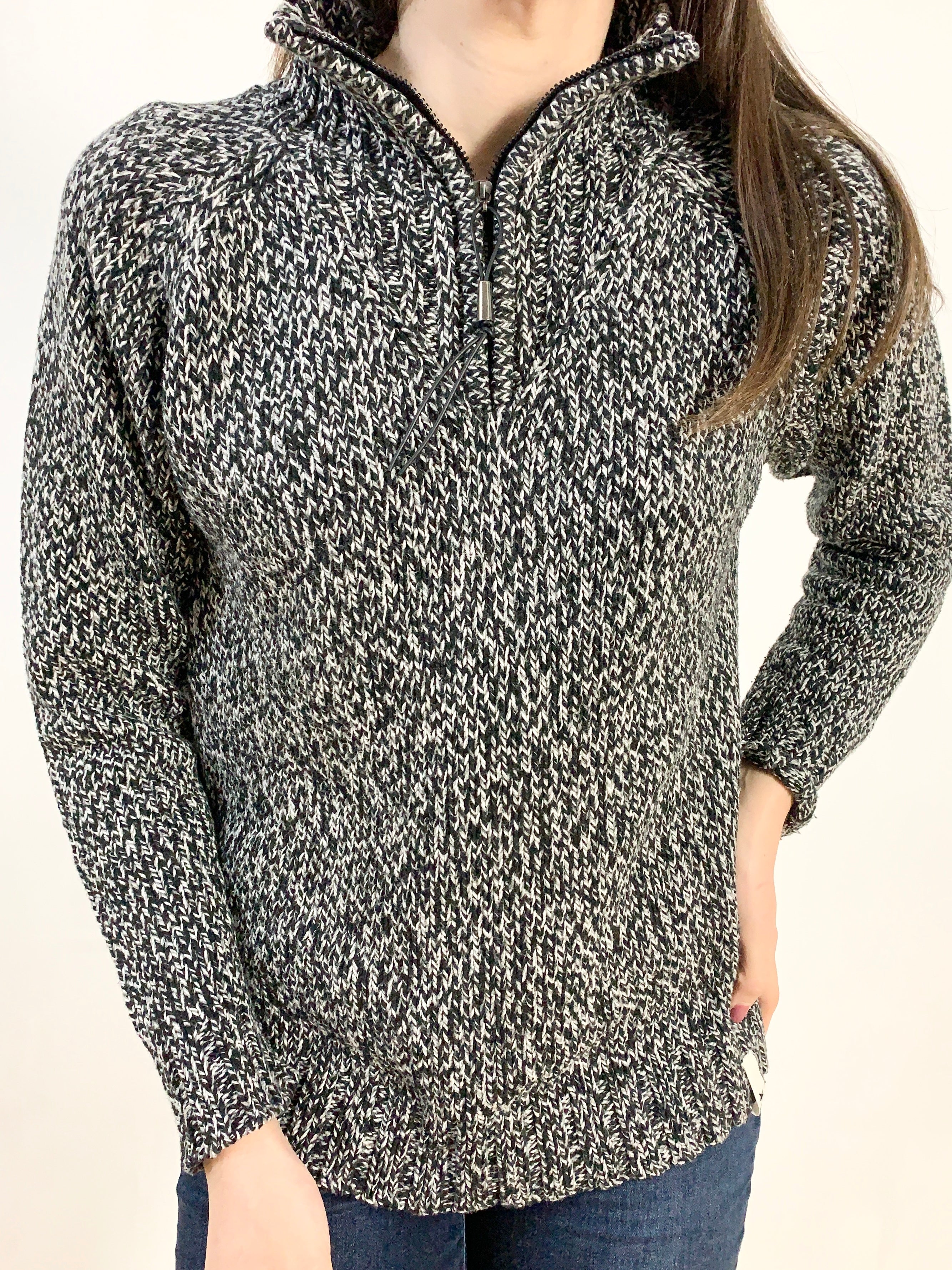 Grazioso pullover melangiato misto lana zip alta comodo e elastico tg M/L misure: