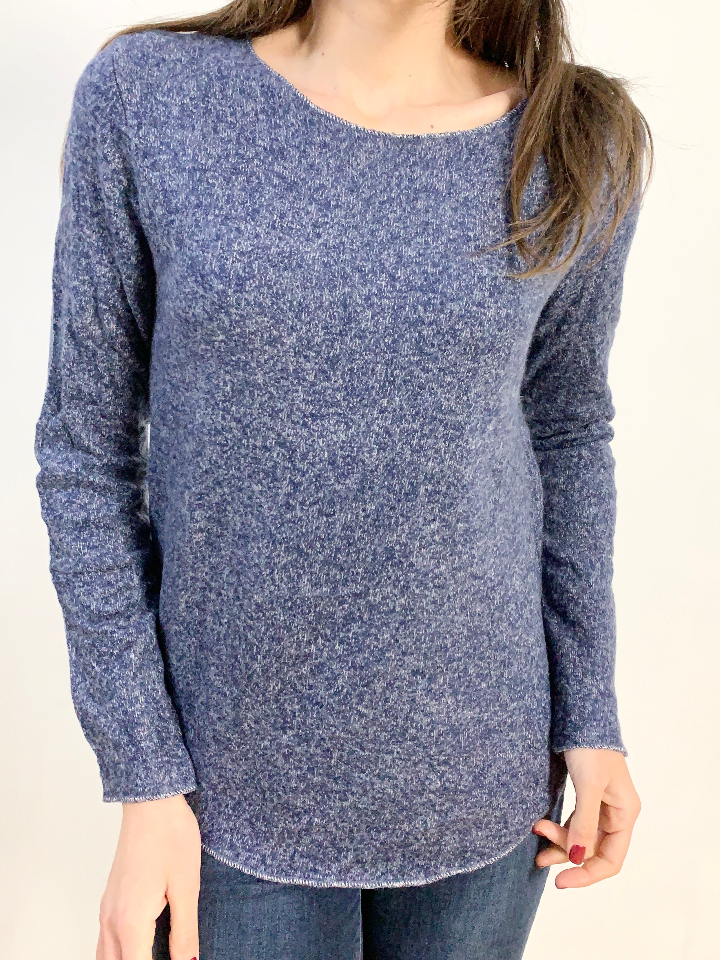 Morbidoso pullover melangiato blu con rifiniture lurex lungo i bordi molto elastico tg M/L misure: