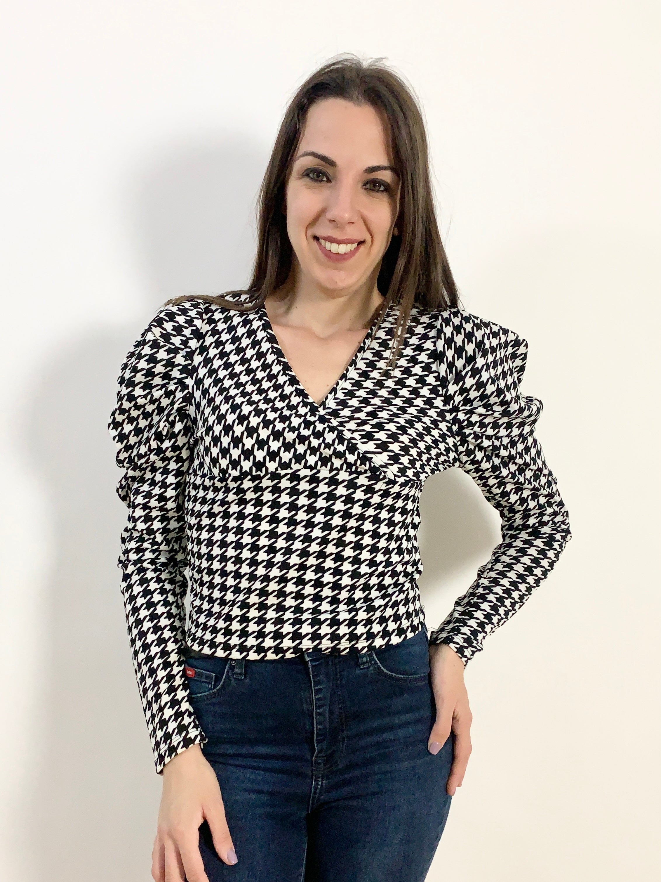 Delicato sottogiacca in fantasia bianco e nero tg S/M con incrociatino morbidoso molto elastico misure: